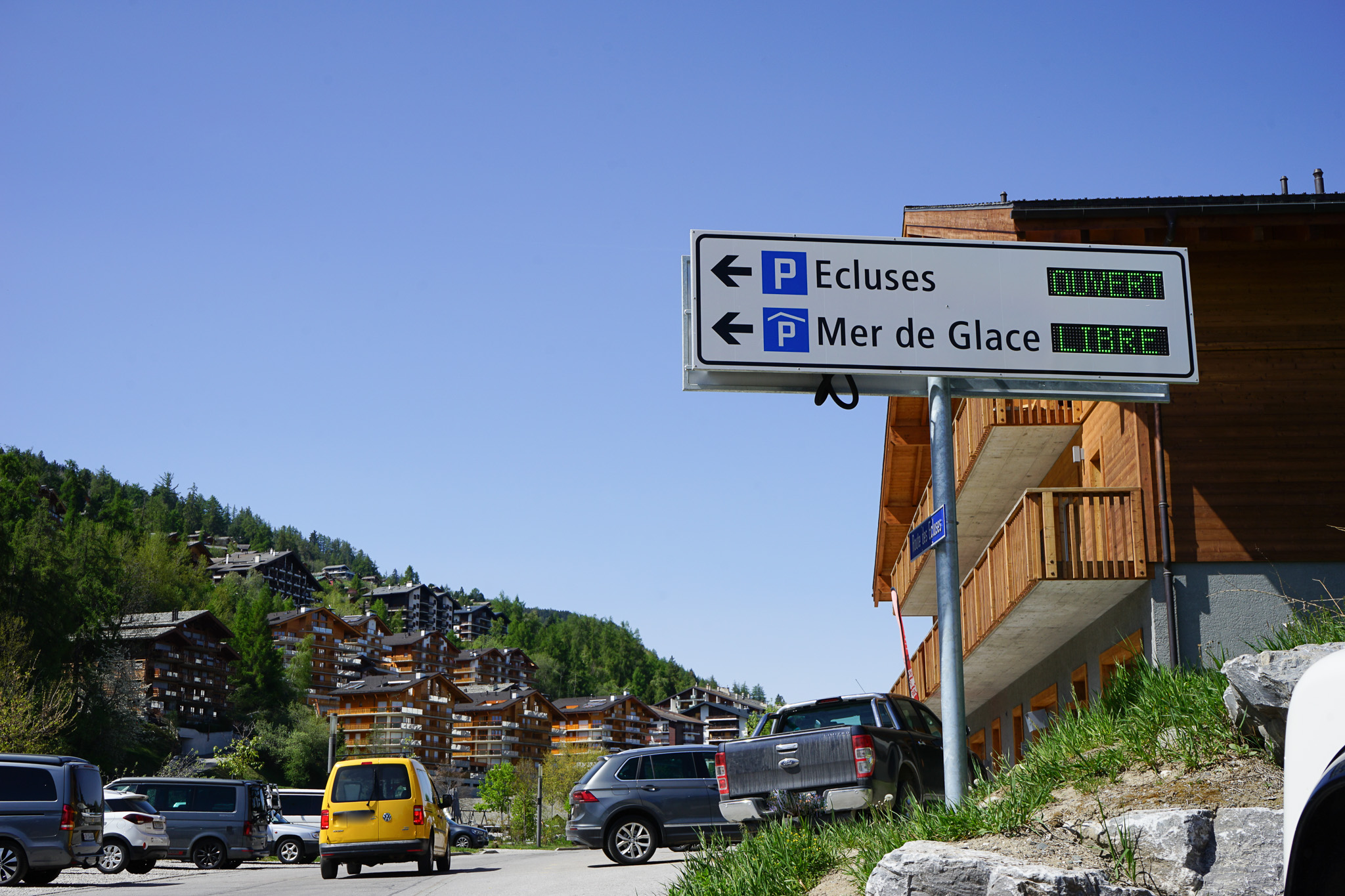 À Haute-Nendaz, la difficulté majeure était double : localiser rapidement les parkings disponibles et réduire les comportements de stationnement sauvage, fréquents lorsque les visiteurs peinent à trouver des places clairement indiquées. Certains parkings, tels que le Parking Mer de glace ou encore le RAE, restaient sous-utilisés simplement parce qu’ils étaient difficiles à localiser. Par ailleurs, l’impact environnemental des véhicules à la recherche de stationnement n’est pas négligeable.