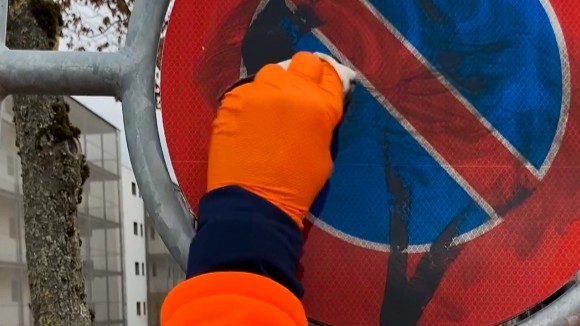 Im Kampf gegen Aufkleber auf Verkehrszeichen